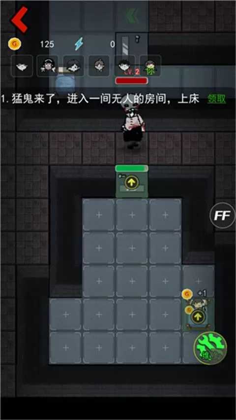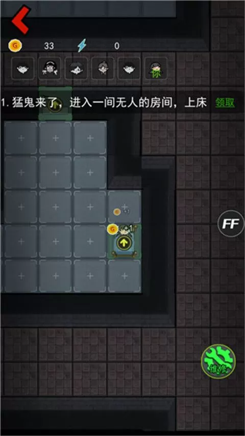 —在发育期间没有鬼来骚扰,把床升到32金币/秒,然后开始搭建炮塔和游戏机(可以产生闪电用来购买道具和升级门),游戏机可以先搭建两个,炮塔可以多建几个。一定不要忘记升级床和门,因为床会提供