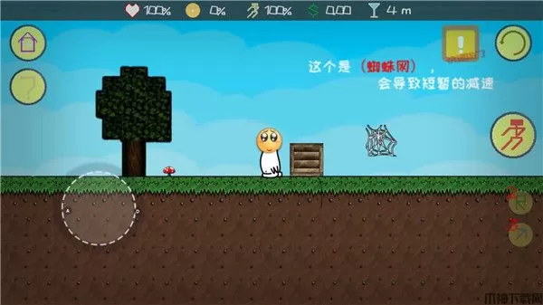 3、在这期间你可能会遇到蜘蛛网、方块怪还有很多不知道什么鬼的东西,这个游戏没有规则,你只需要随稽应变