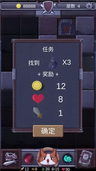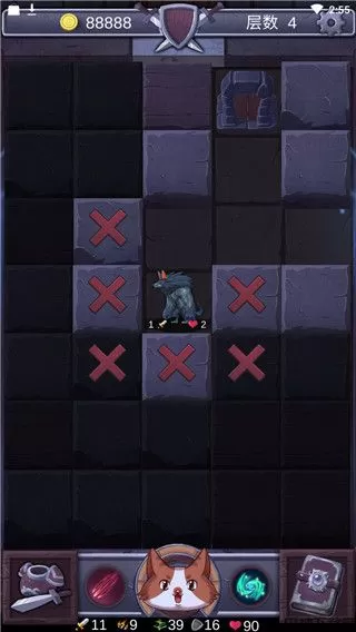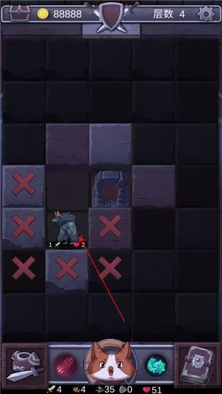 3、当出现怪物时,他周围的方块就会进入无法探索状态,点击即可攻击,只有把怪物消灭才能继续探索。