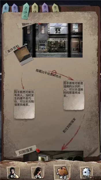 1、章节开始,在咖啡厅内,通过隐藏凶手线索的地点,指向刘刚强家。