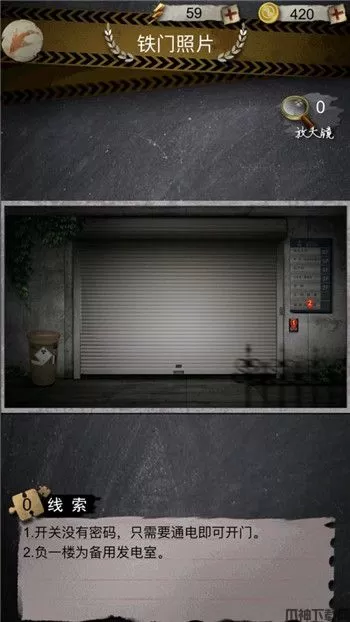 5、然后来到图片背景所在的医院,在大门处我们可以发现开关没有密码,只需要通电即可开门;负一楼为备用发电室。