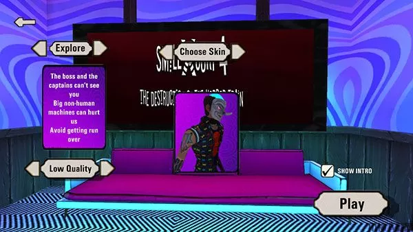 2、在开始前,可以点击左上角的箭头来选择【游戏难度】,左下角的箭头选择【游戏画质】,正上方的箭头选择【角色皮肤】。