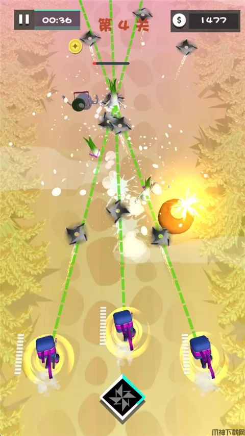 1、游戏没有主界面,玩家进入即可开始挑战关卡,点击即可瞄准攻击;