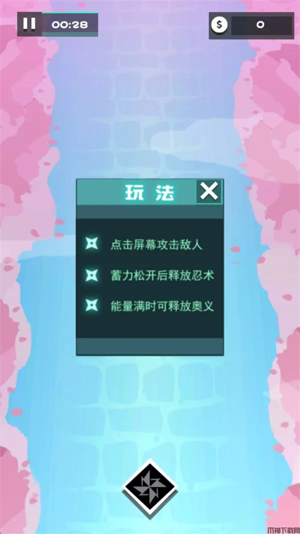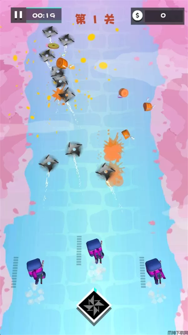 这个游戏是一种休闲游戏,游戏玩法是三个忍者打水果,画质和音效都挺不错。