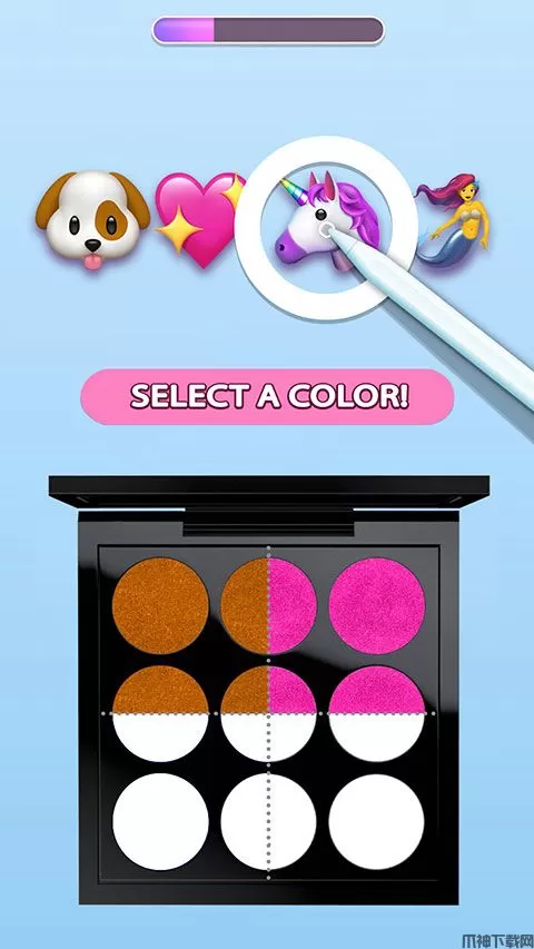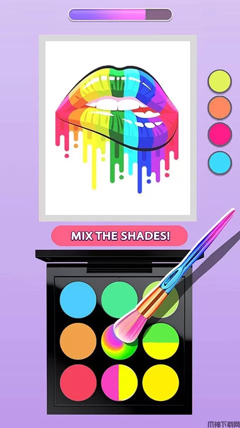 makeupkit眼影盒子是由CrazyLabs LTD推出的一款以调配眼影盘为背景模拟体验游戏,全名又叫《Makeup Kit - Color Mixing》(眼影盘-颜色混合)。该游戏采用了2D卡通画风,每一幅图画都有着自己的风格,或是人、或是物、或是场景,从基本的色彩到不同颜色之间的渐变,玩家在游戏中扮演一位调配眼影盘的高手,将画作上的颜色吸取下来,对其进行混合后打造出色彩艳丽的眼影盘,你将随心所欲的打造出独一无二的眼影盘。
