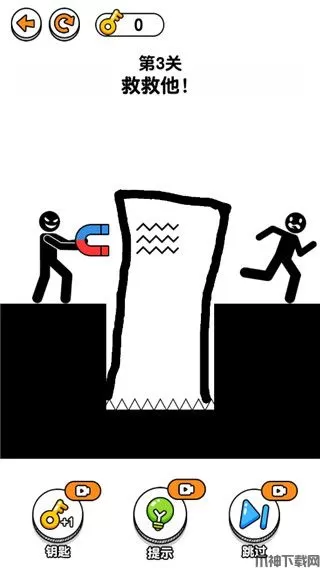 4、想办法救出火柴人,帮助火柴人顺利的逃离困境吧。