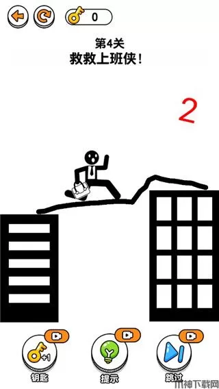 3、第四关,画一条直线将两个平台连接起来。