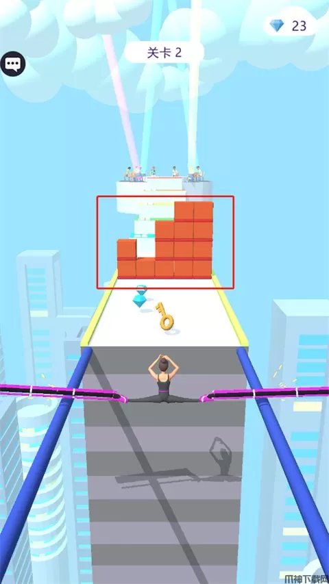 3、遇上轨道就用高跟鞋做支撑滑过去,遇上高墙就跳过去,有巨大的惊喜在重点等你;