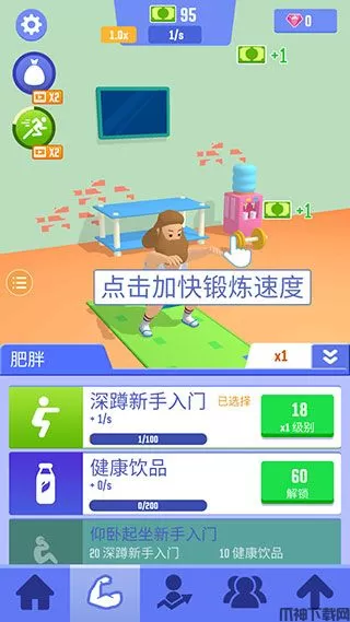 3、点击屏幕可以加快主角的锻炼速度,以获取更多收益。