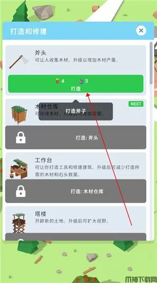 3、我们首先要制作一把斧头,点击制作;