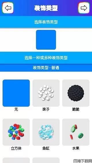 5、此刻来到了装饰环节,选择一种或多种装饰类型,如脆脆、珠子、立方体、水果等来确定粘液装饰环节。