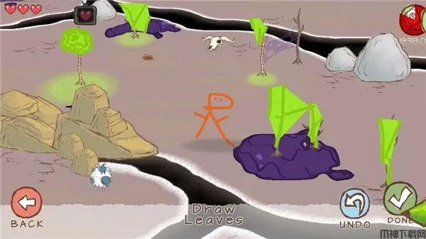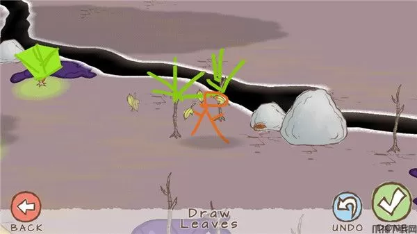 下方的树叶画笔就是你的武器,在干枯的树枝上画个树叶,然后就能获得重生,并且还可以消灭即将要出现的各种怪物哦!