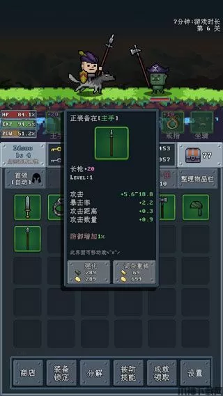 4、而且你还可以升级武器,提升自己的攻击和防御,以及生命值;