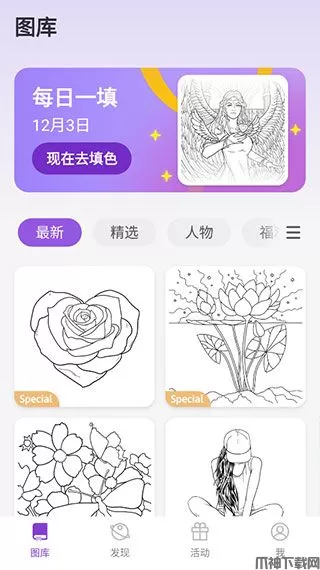 1、在本站下载安装好数字填色官方版后,打开进入图库,按照分类自由选择自己喜欢的类型进行填色。