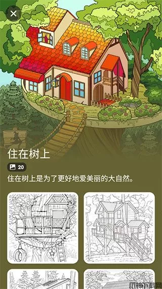 2、往往一个主题里面会有很多张同类型的画作填色卡。