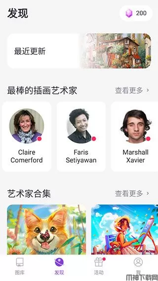 7、点击“发现”还可以找到更多的插画艺术家精品作品,都非常推荐!