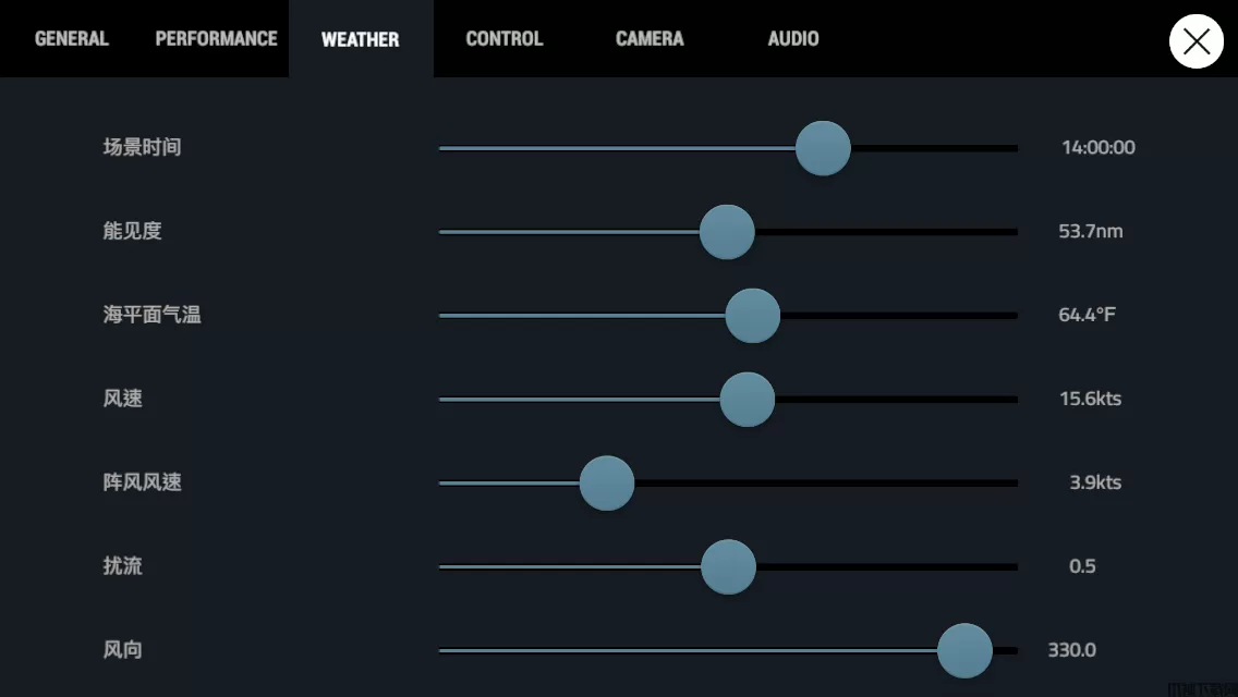 (3)天气设置,航母降落时合适风向330,机场降落时合适风向300