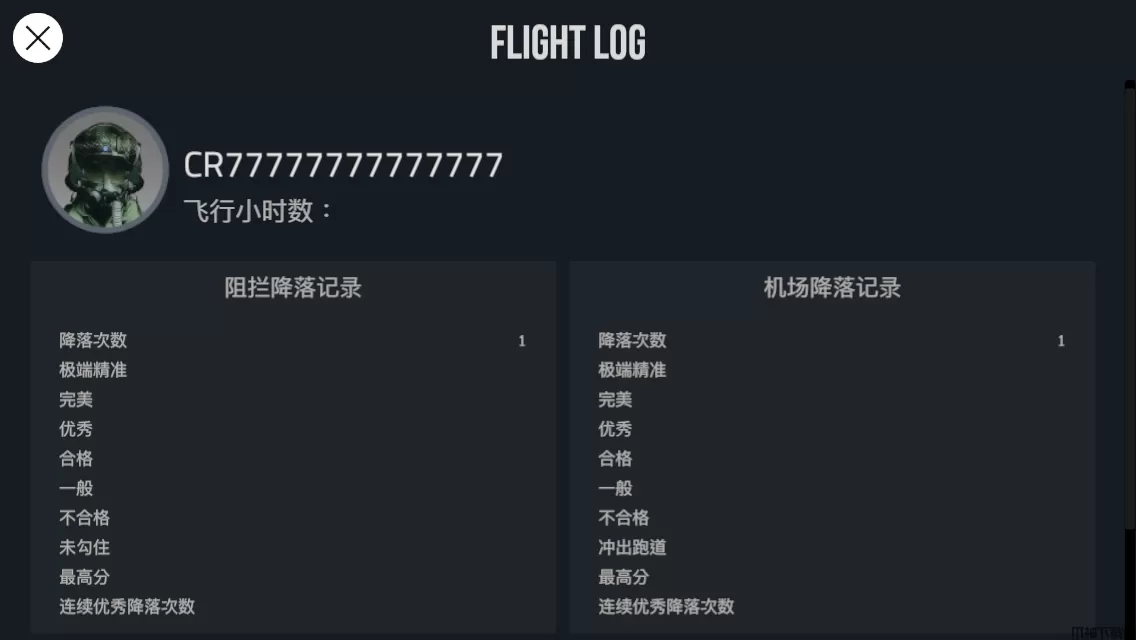 这里面可以显示你的飞行次数和你的一些成绩,非常有用,可以看自己的水平是否提升。