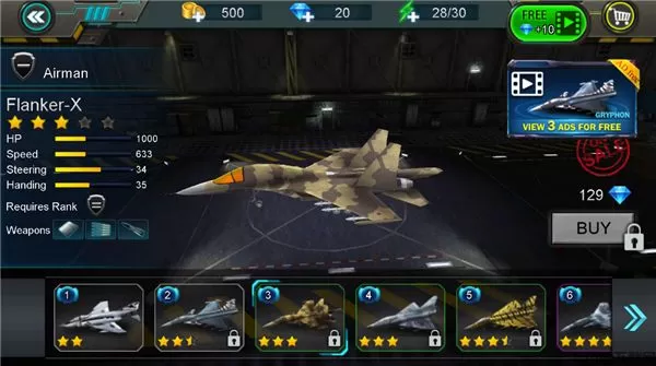 6、有许多类型的飞机可以驾驶,但你需要有足够的钱来解锁它们,消灭更多的敌人吧