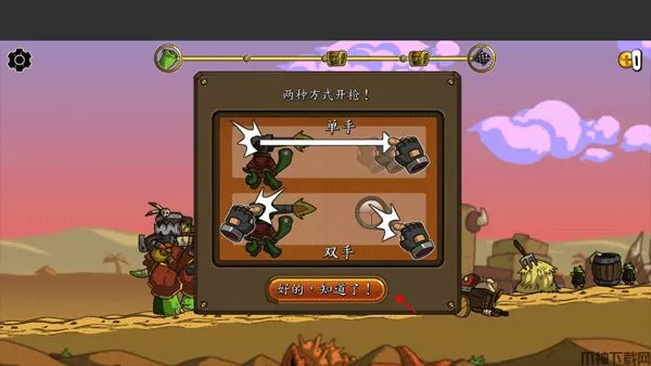 5、里面有两种开枪方式,一种是单手点击枪,一种是双手,了解了之后点击“好的,我知道了!”;