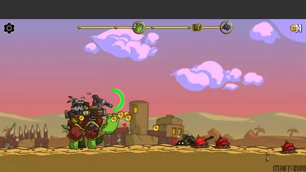 超级装甲战龟还是一款卡通设计风格的横版射击游戏,但采用的是触摸屏实际操作,游戏中玩家们将饰演一只身上武器装备着防空炮的乌龟,而正前方则是成千上万来阻挠的快穿炮灰哥布林,玩家只要简易实际操作便能发送出不同种类的火炮,攻击前方各式各样的敌人,也可以摧毁木材立柱,全屏幕乱窜,玩着很是带劲,尽管座骑是个乌龟并不是很拉风,但它会装萌,会进食,因此或是忍了,我就理解了为何选乌龟当座骑,常常一不小心按到乌龟给它加快,就觉得一瞬间就狂奔到敌人怀里中。