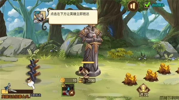 6、感觉可以打赢即可点击右下角的进攻来摧毁他们的雕像;