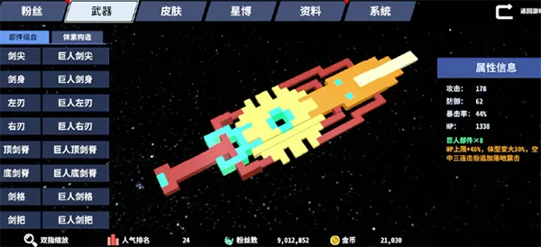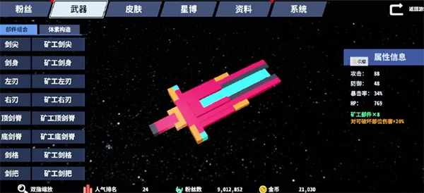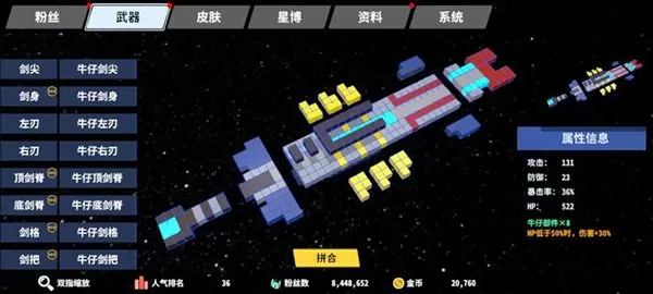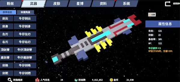 星际角斗场手机版武器部件组合介绍