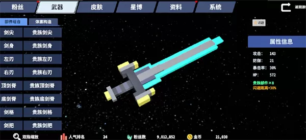 攻击Boss特定位置,掉落多样化武器部件。相同前缀的武器部件,还含有特殊的套装效果,搭配体素构造功能,可以发挥想象打造属于自己的绝世好剑!