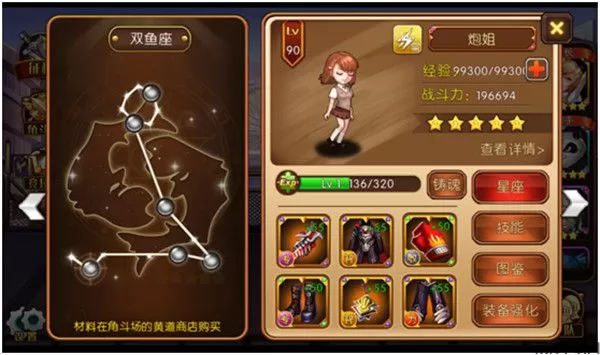 最后能在角斗场中更胜一筹的法宝就是升级英雄的星座啦,升级星座的材料需要在角斗场的黄道商店购买