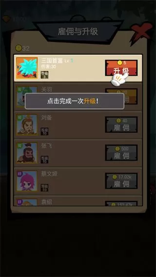 2、打到一定的钱后,玩家可以点击强化来升级和雇佣武将;