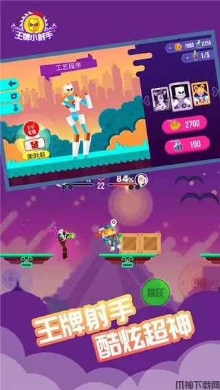 王牌小射手是一款简约风格的射击类休闲益智游戏,游戏中的画面简约自然,角色造型丰富多彩,玩法方面也是通俗易懂,玩家在这里控制自己的角色进行射击比赛,看谁获得的分数越高就能获得比赛的胜利,关卡的难度会随着游戏的深入逐渐的加深,所以你要提前适应好