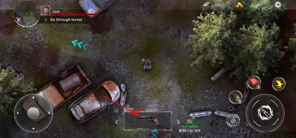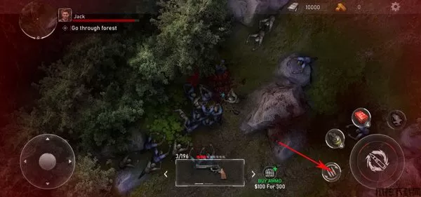 1、在本站下载安装好亡灵丧尸杀手汉化版后,打开进入游戏,左下角按钮可以控制角色自由移动。