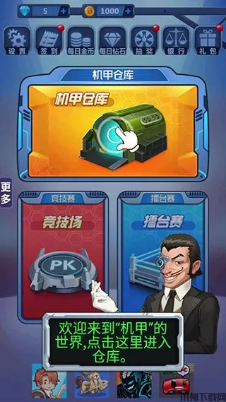 2、进入 游戏后点击仓库获取机甲;