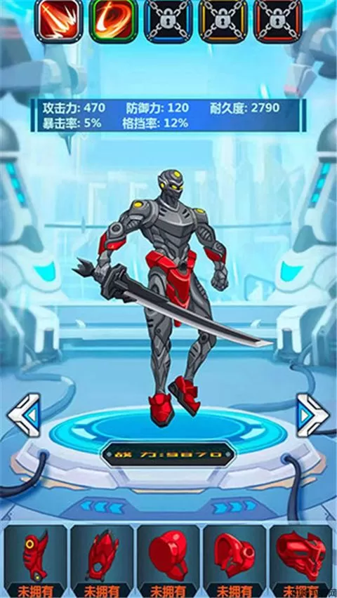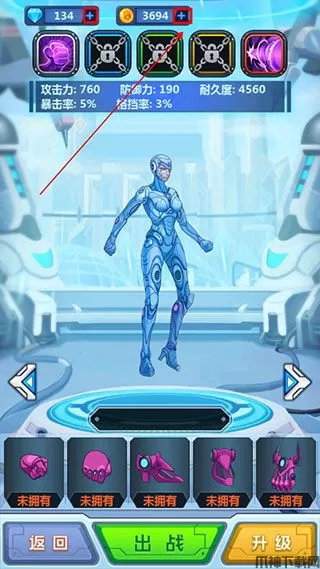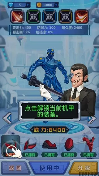 3、获得机甲后逐步的将机甲装备进行穿戴;