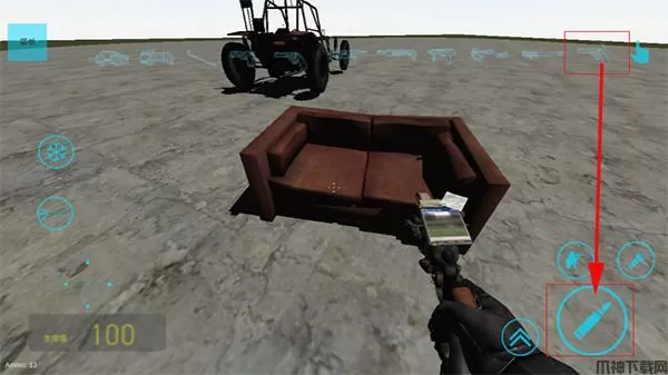7、当需要摧毁生成的物品、人物或生物时,我们需要切换武器,再点击射击。