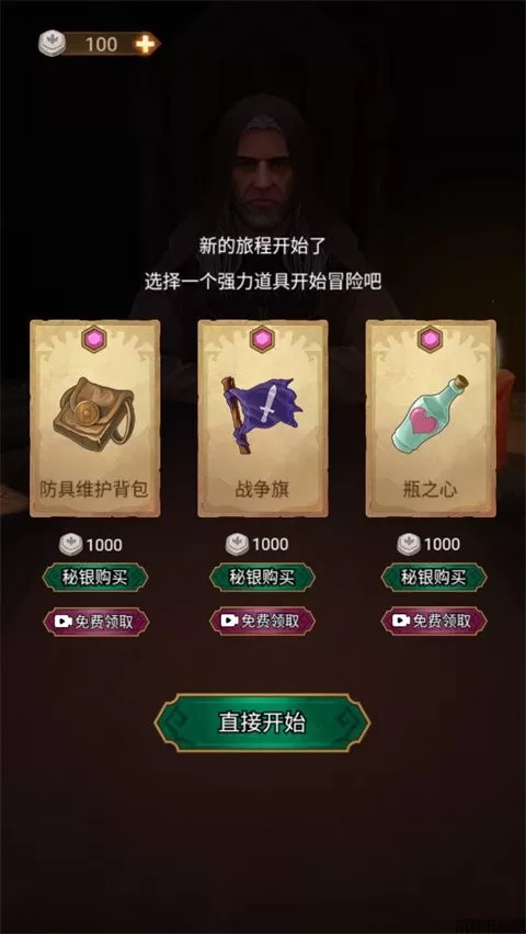 4、这里可以选择你个强力道具开始冒险,也可以直接开始;