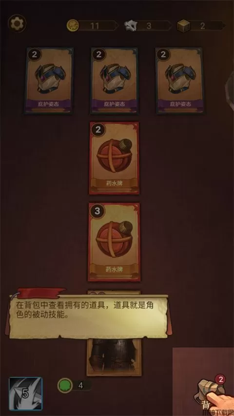 10、在背包中查看拥有的道具,道具就是角色的被动技能;