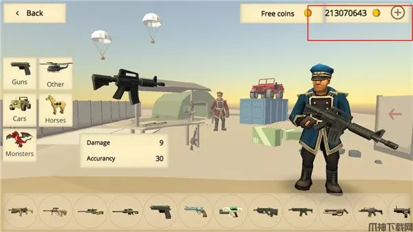3、你可以随心所欲的利用金币来购买枪械、坐骑、直升飞机、恐龙等等。