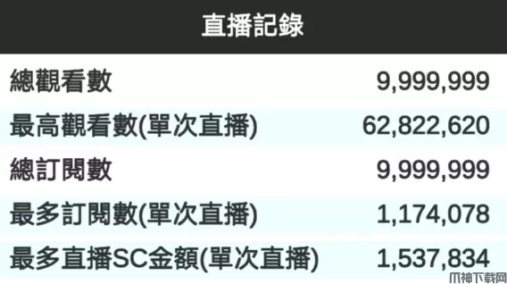 总订阅数/观看数/资金/V点,最高9,999,999