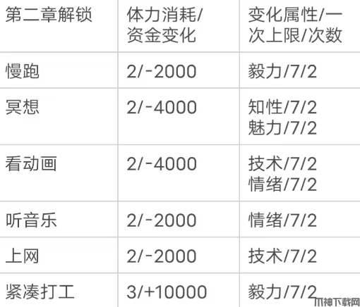 肌肉笨蛋:毅力超大幅度提升,其余属性较小幅度降低。