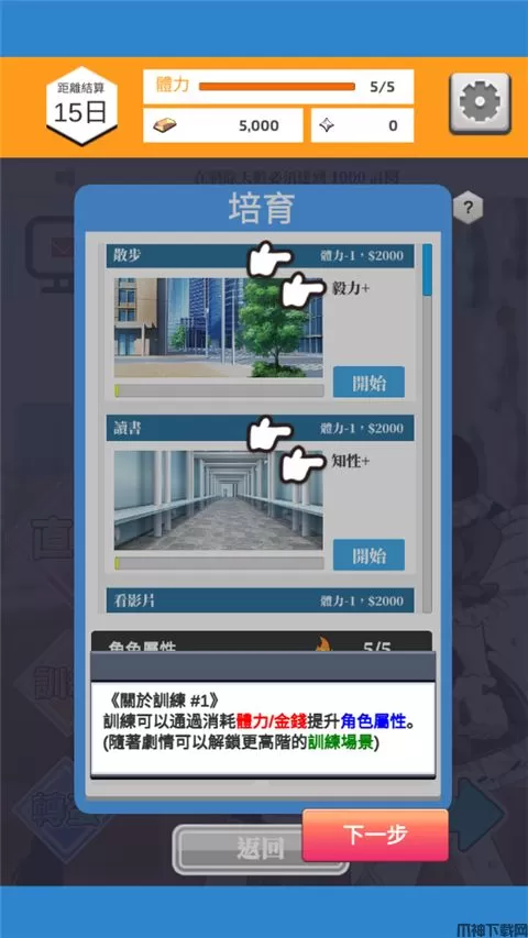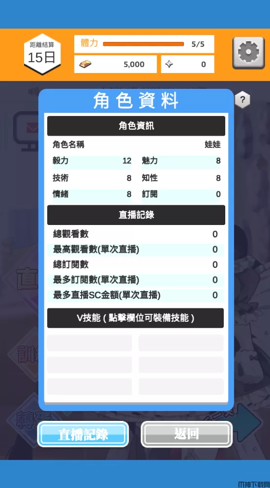 通过直播和剪辑获得资金和点数!训练可以提升自己的属性,让直播时更有利