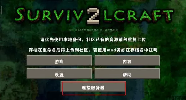1、下载并安装本站提供的生存战争2.2联机版游戏,进入首页如图所示,点击连接服务器。