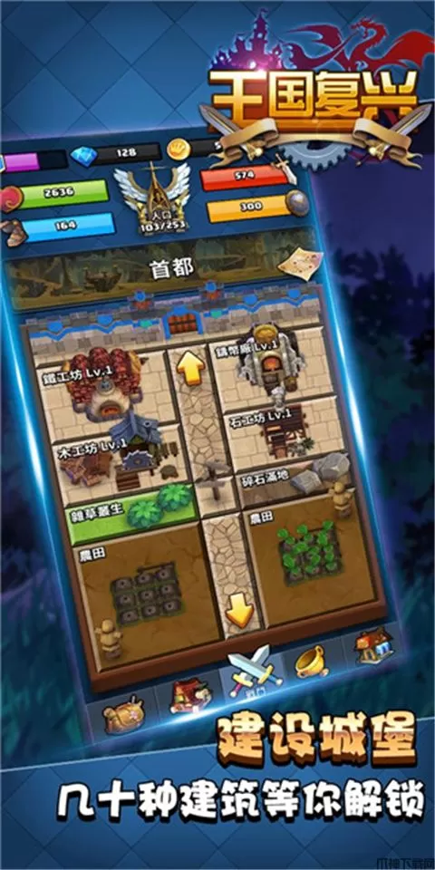 将废弃的主城一点点维修升级……铁匠铺、练兵场、图书馆,能建的都建起来!