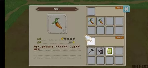 这里有个细节就是第一天可以不开垦农田等第二天卖胡萝卜的钱刚好可升级工具,把洒水壶升级一次浇三块田美滋滋。