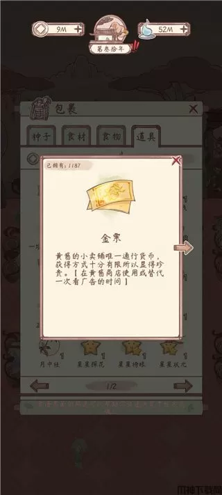 用法:金票可以在黄酱小铺兑换道具,也可以替代广告观看(eg.繁荣、缩短种植时间等),是很重要的道具(记得不要忘记黄酱小铺里可以每天看50次广告领取)