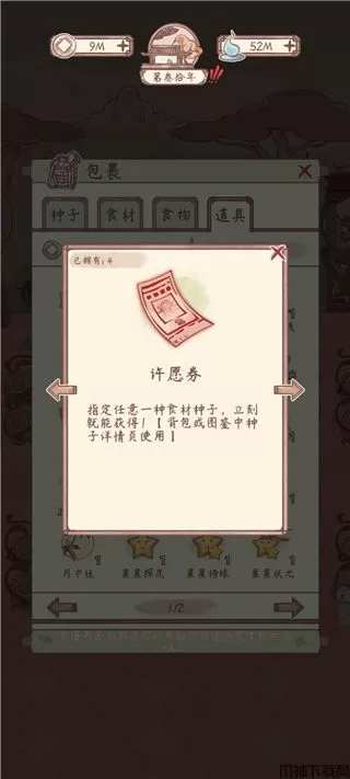 来源途径:春节活动用法:在包裹内使用,随机获得奖励,例如金票、无忧食材、无忧种子等