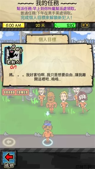 3、游戏中最重要的势力是狱警和四大帮派。拍马屁和塞钱可以让狱警对你产生好感,然后在面对暴力冲突时为你撑腰。不过光有狱警帮助用处不大,一统四大帮派才是玩家制霸的目标。四大帮派指喜欢健身的流氓帮、擅长篮球的负心者联盟、偏爱赌博的金钱帮和最爱拳击赛德枪炮玫瑰帮,只要玩家能拥有“投帮派所好”的技能,并利用放风和牢房自由行动的时间与他们多打交道,最后就能入帮获得他们的庇护,甚至是成为名震江湖的帮主!