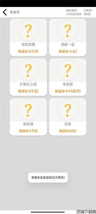 花钱模拟器是一款休闲模拟游戏,在这里你可以轻松体验有钱人的烦恼!在游戏中你将拥有巨额的财富,你可以尽情购买最新潮的包包、限量版的球鞋、海景别墅等等!在花钱模拟器游戏内你所要做的只有一件事,那便是在琳琅满目的商城中,花光账户里的余额,并且游戏中玩家只要不停的点点点,还能解锁隐藏成就。感兴趣的玩家欢迎下载体验。