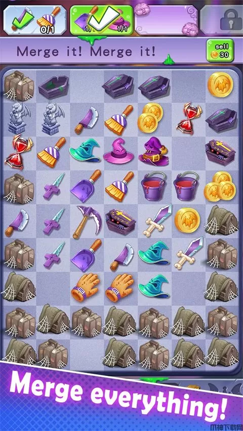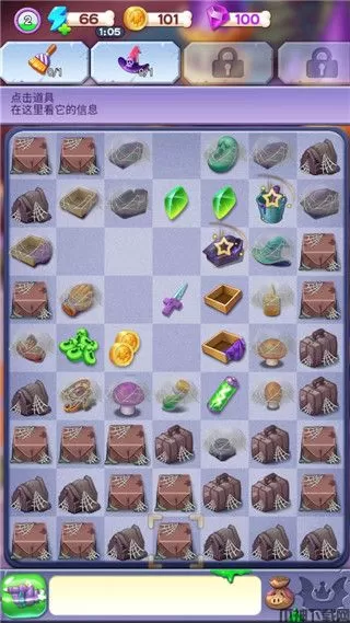 3、你只需要用手指滑动屏幕就可以完全玩这个游戏,通过连续合成获得相应的物品,完成重建魔法庄园的任务。