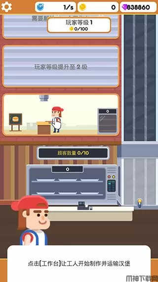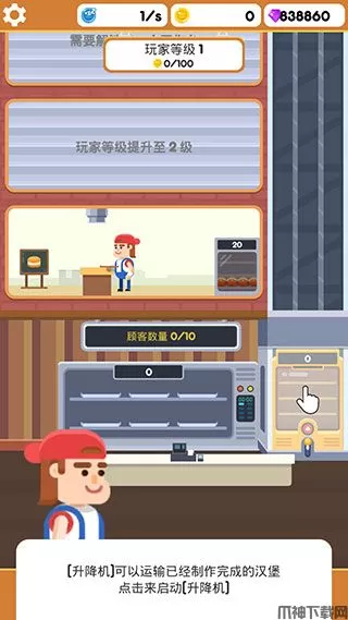 2、工厂设备:升级您的设备,如汉堡制造机,电梯,以加快速度。